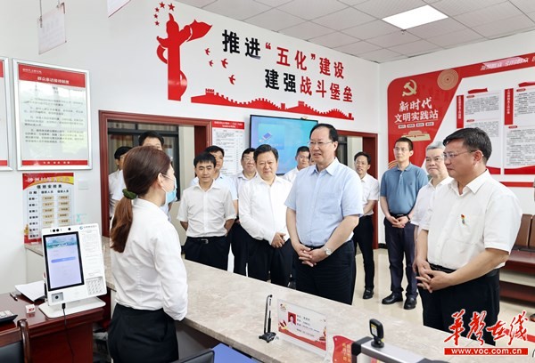 (毛伟明在汝城县沙洲村服务中心调研。)
