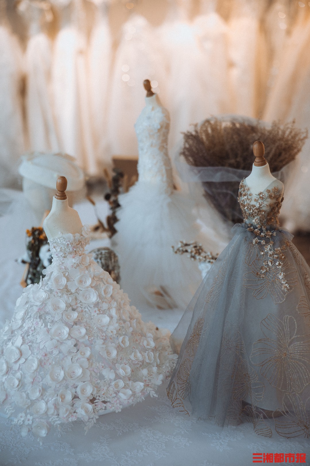 “迷你婚纱作品积累到一定数量后,我把她们放在自己的婚纱工作室内进行展示,受到了顾客们的喜欢。”婷子告诉三湘都市报记者,几乎每位来店内试穿婚纱的顾客,都会被这些迷你婚纱所吸引,经常有顾客向婷子提出要求,想定制和自己结婚时穿着婚纱一模一样的迷你版,“问的人多了,我开始提供定制迷你婚纱的服务。”