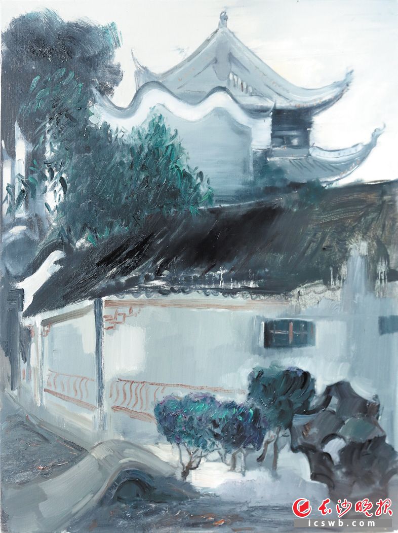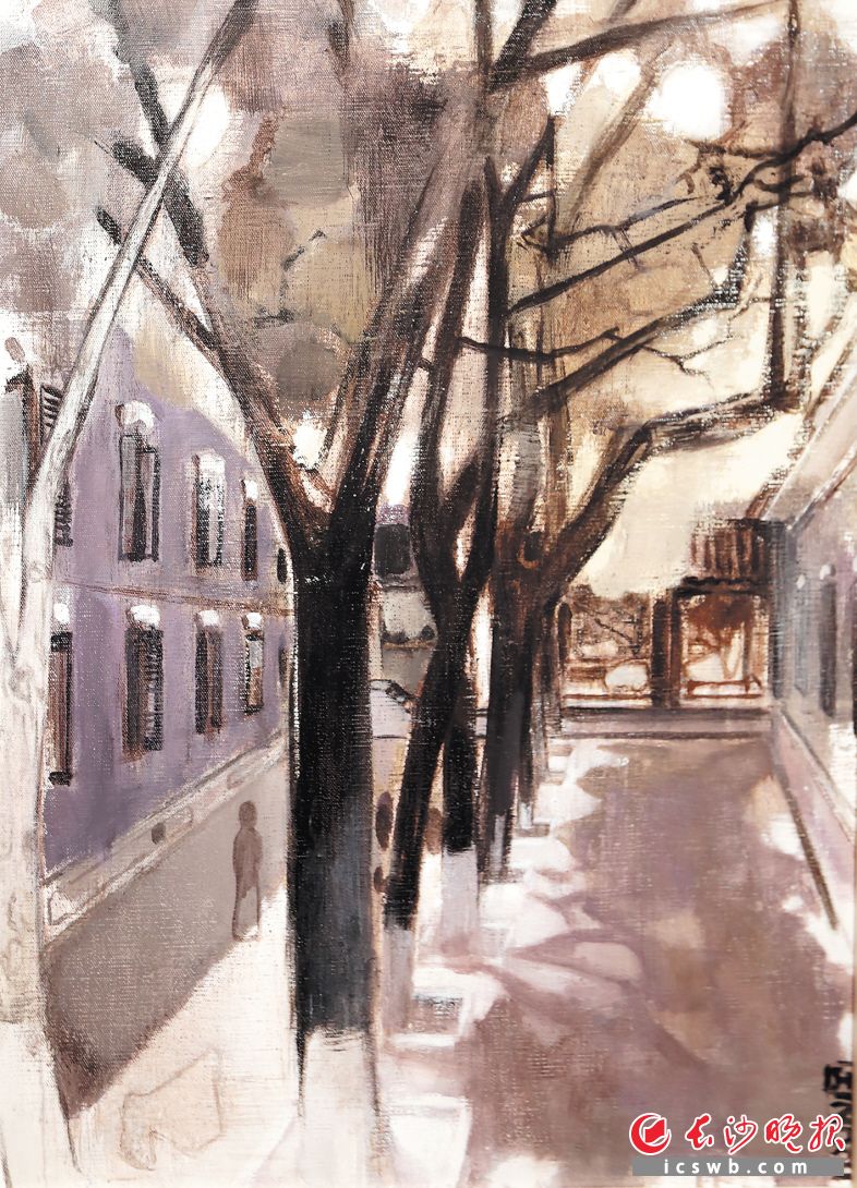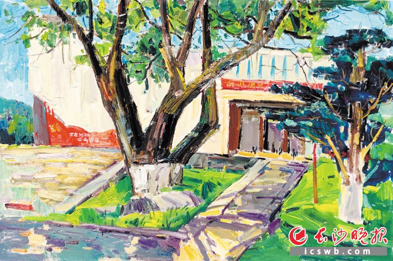 黄菁《湖南第一师范校园一角》60×80cm