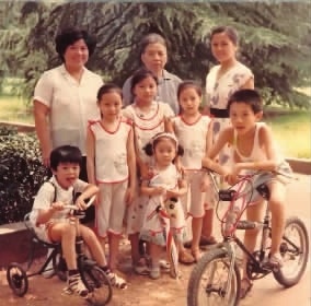 1989年8月,易淑媛老人(后中)与家人在烈士公园合影。