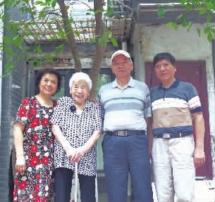 2021年6月,易淑媛老人(左二)和儿女们在家门口合影。