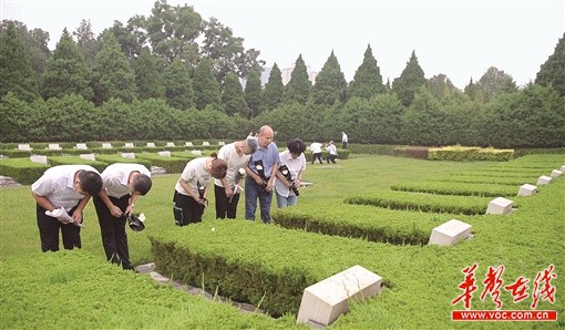 9日上午,祭扫团走进坐落在石家庄城市中心的华北军区烈士陵园。园内宁静肃穆,毛泽东同志亲笔题词的“为国牺牲永垂不朽”纪念碑巍然耸立,东西墓园松柏环绕,绿草如茵,分别安葬着318名烈士,11位湘籍烈士也长眠于此。