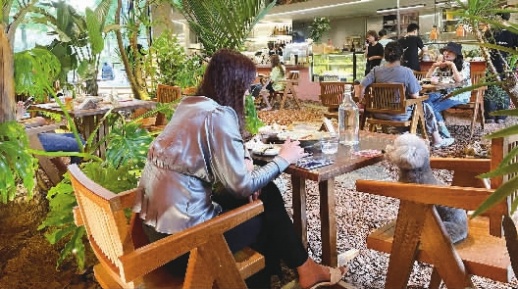 6月20日中午,在浏阳河婚庆公园附近一家咖啡馆内,宠物正陪同主人一块儿用餐。记者 黄亚苹 摄