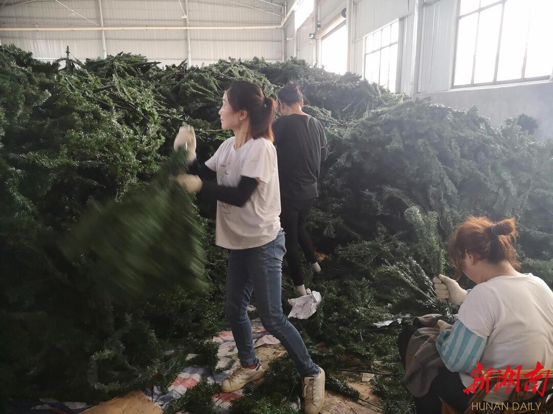 “这公司虽才开业不到一年,但解决了我们很多农村妇女就业问题,其中不少曾是建档立卡贫困户。”镇党委书记张华告诉记者,“公司生产圣诞树的原材料,都在岳阳进货,也带动了本地经济的发展。”