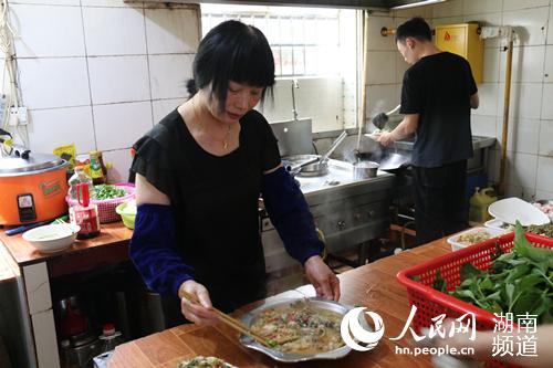 彭正军的老婆和儿子正在下厨。人民网 何萌摄