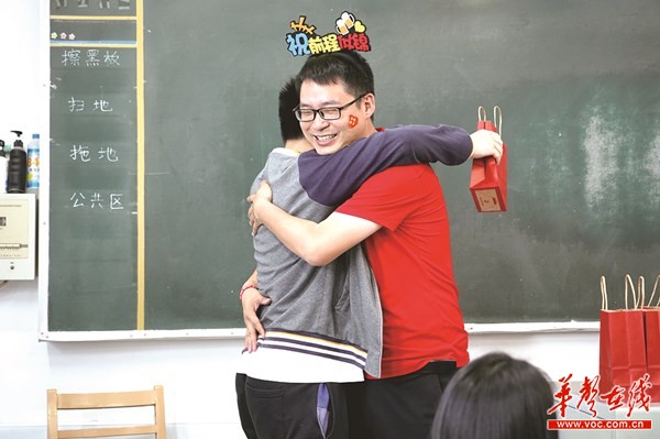 在1801班,记者发现每个学生不仅有象征着“高中”的糕点和粽子,还有一个红色的纸袋,里面装有毕业证书、学生专属印章、贺卡,以及一个装有66元的红包。“这是给孩子们准备的送考礼物。”该班班主任宋沿德告诉记者,贺卡是定制的,上面是孩子们的毕业照,背面的祝福语都是他手写的。宋沿德说:“66元红包寓意孩子们高考‘六六大顺’,我还特地将一元纸币换成了硬币,因为这枚硬币象征着我和孩子们的感情就像‘硬币’一样硬。”