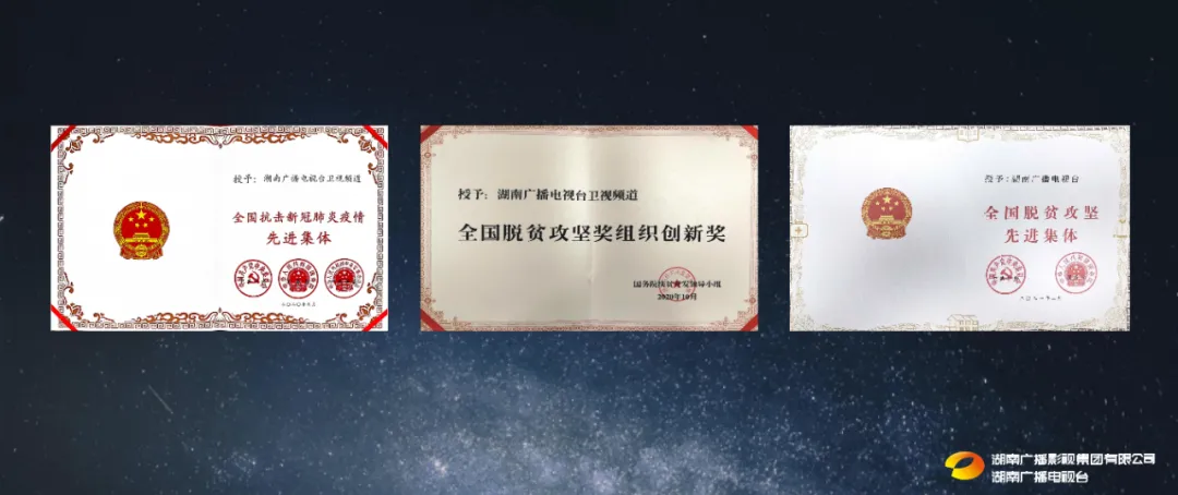 国之大者,我之所为。抗击疫情,湖南卫视以“四个第一”展示了芒果人的敏锐、速度、战斗力与影响力;脱贫攻坚,我们以新闻扶贫、综艺扶贫、直播带货、公益宣传等多种方式深度参与,“脱贫攻坚三部曲”《从十八洞出发》《大地颂歌》《江山如此多娇》反响巨大。湖南卫视荣获“全国抗击新冠肺炎疫情先进集体”称号和“全国脱贫攻坚组织创新奖”,湖南广播电视台荣获“全国脱贫攻坚先进集体”称号,三项国家级荣誉让我们倍感振奋。弘扬中华优秀传统文化,湖南卫视、芒果TV联手打造了大型纪录片《中国》(第一季),其为中华民族、中国价值、中国制度探寻源流的勃勃雄心引起广泛关注,目前我们正在推进《中国》第二季和大型人文纪录片《岳麓书院》的拍摄。开局“十四五”,湖南省委提出了实施“三高四新”战略、奋力建设现代化新湖南的战略目标,服务这一战略,湖南广电正在实施一系列新闻宣传、影视创作、产业发展工程。