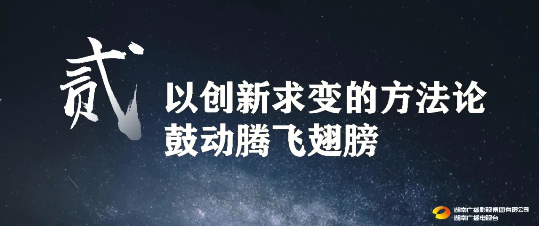 2、创新。创新求变的基因,深深植根于湖南广电的生态中。一档仅仅4分钟的微专题片《党史上的今天》,也做了很多创新:改变演播室模式,走到山川大地、故事现场去讲述;改变一两个主持人一讲到底的套路,发动了一大批明星艺人加盟;沙画、动漫、虚拟、4K……各种手段齐上阵,“螺蛳壳里做道场”。《江山如此多娇》将艺术化的扶贫与真实的扶贫相结合;《百炼成钢》不但创造性采用组歌式结构全景反映百年党史,而且用富于综艺气质的情境部分串联各个板块的情节部分。要做到让主旋律有高频率、正能量有大流量,唯有创新。