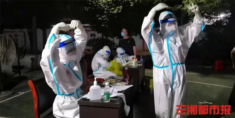 (宁乡市中医医院医护人员在宁乡创业社区进行核酸检测采样。)