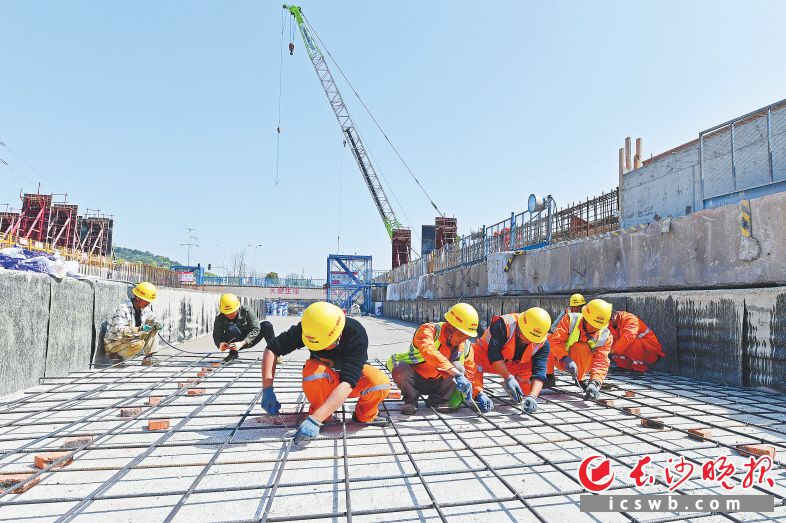 在湘江西岸,暮坪湘江特大桥建设正酣。记者在项目工地上看到,工人们正在忙碌,许多机械都已入场施工。