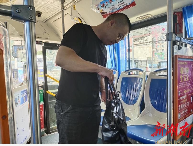 沈卫军是一名往返益阳、沅江两地的公交车司机。7月13日中午,车辆到达沅江市百合汽车站,乘客悉数下车。沈师傅照例在车厢内进行检查,他发现在一个座椅上放着一个皮包。他打开皮包一看,里面有五万余元现金和各类证件。他知道失主肯定很着急,得赶紧联系上失主。沈师傅立即报了警。接到报警电话,沅江市公安局两名民警赶往现场。在等待民警到来时,沈师傅也对照皮包里的通讯录,一个个拨打电话联系失主的朋友,看能不能联系上失主。