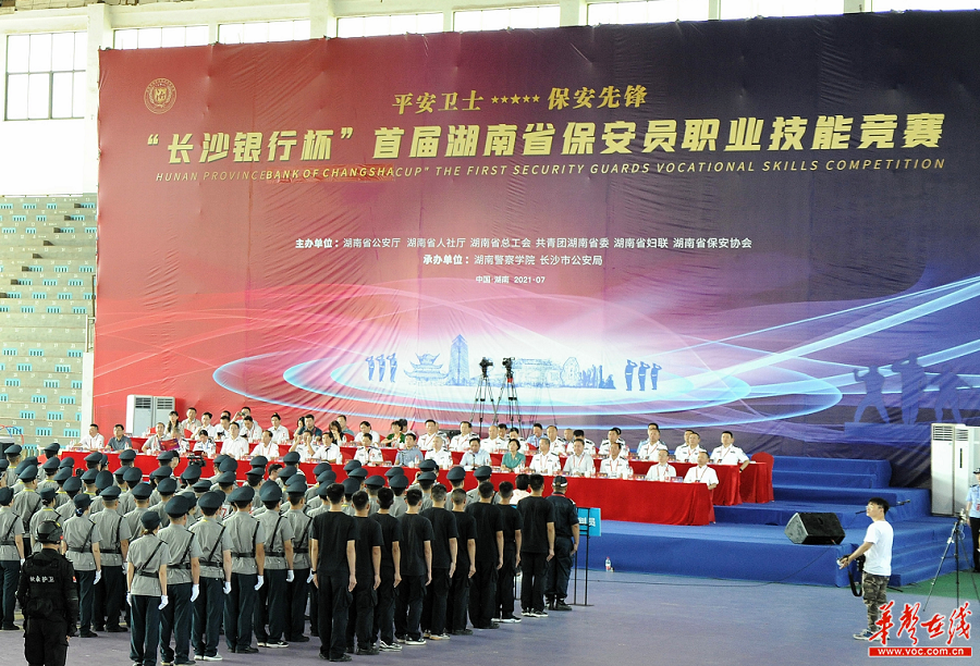 此次竞赛以“平安卫士 保安先锋”为主题,由湖南省公安厅、省人社厅、省总工会、团省委、省妇联、省保安协会联合主办,湖南警察学院、长沙市公安局承办。中国保安协会第一副会长刘绍武,省公安厅党委委员、副厅长谭学军,省人社厅二级巡视员全教稳出席开幕式并讲话。