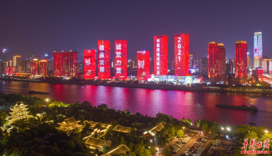 7月12日晚,长沙湘江两岸地标建筑流光溢彩,上演“网络诚信之光”主题灯光秀。7月15日至16日,以“诚聚力量 信赢发展——共建网络诚信新时代”为主题的2021中国网络诚信大会将在长沙举办。