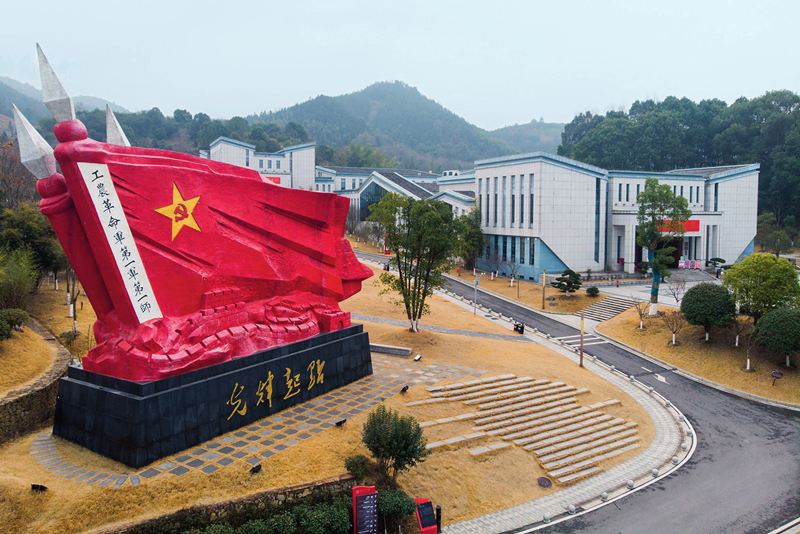 今年“七一”前后,位于湘赣边罗霄山区的文家市镇被装点得格外喜庆,来革命圣地重温红色历史、感怀革命先烈的人群络绎不绝。秋收广场东南方,以工农革命军第一面军旗、万里长城、毛泽东诗词《西江月·秋收起义》为主要元素的“光辉起点”红旗雕塑格外醒目。