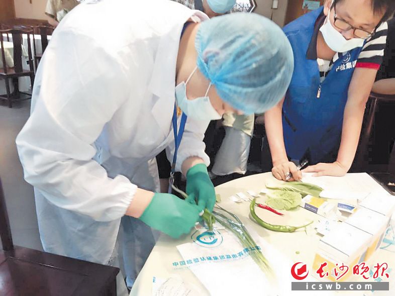 检查人员对火宫殿、超级文和友的蔬菜进行采样检测,结果均为合格。长沙晚报全媒体记者 王斌 摄