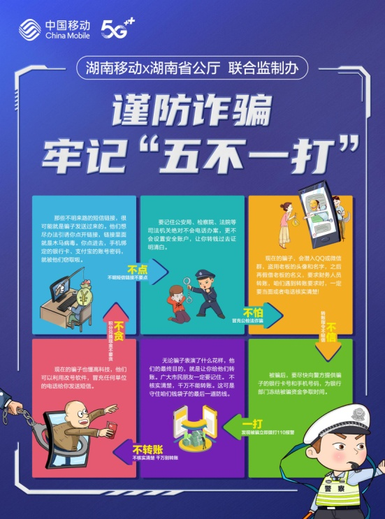 湖南移动用户多、门店多、网点分布广,发挥好这些优势,可以让更多的人了解电诈的危害,学习反电诈的知识。