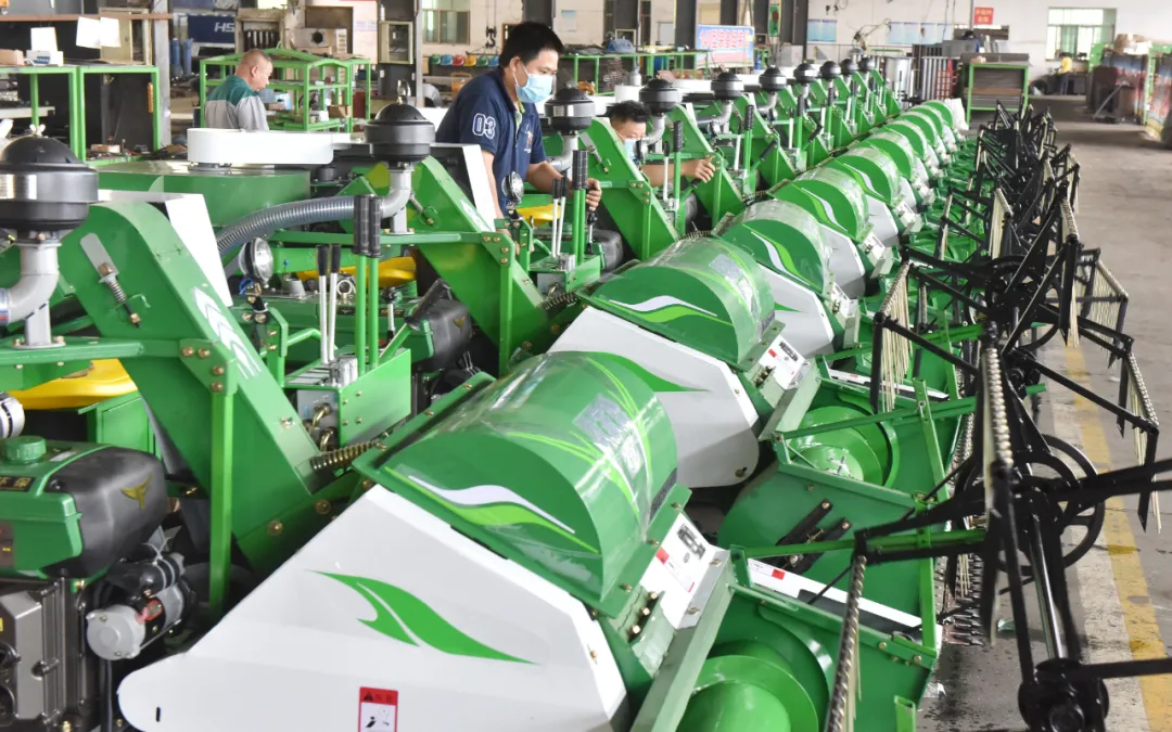 8月11日,双峰县经济开发区湖南湘源金穗智能装备有限公司,工人在调试出口东盟国家的微型收割机。今年上半年,该县农机规模以上农机企业产值39.4亿元。 乃继辉 摄