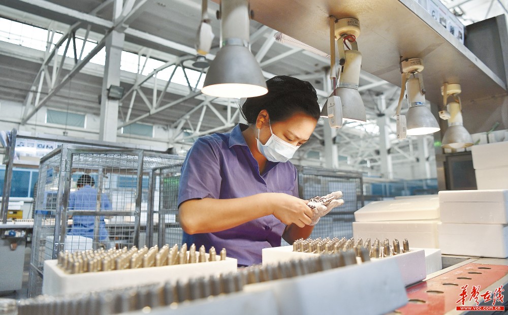 8月25日,株洲经开区,潍柴火炬科技股份有限公司火花塞总装车间,工人在生产线上忙碌。该区出台多项措施支持企业有序生产。目前,该区35家重点规模以上工业企业全面恢复正常生产。