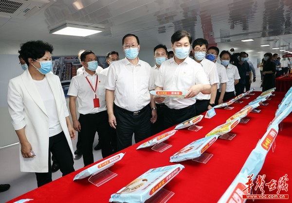 毛伟明在湘潭县广州酒家集团利口福食品有限公司调研。照片均由湖南日报•华声在线记者刘尚文摄
