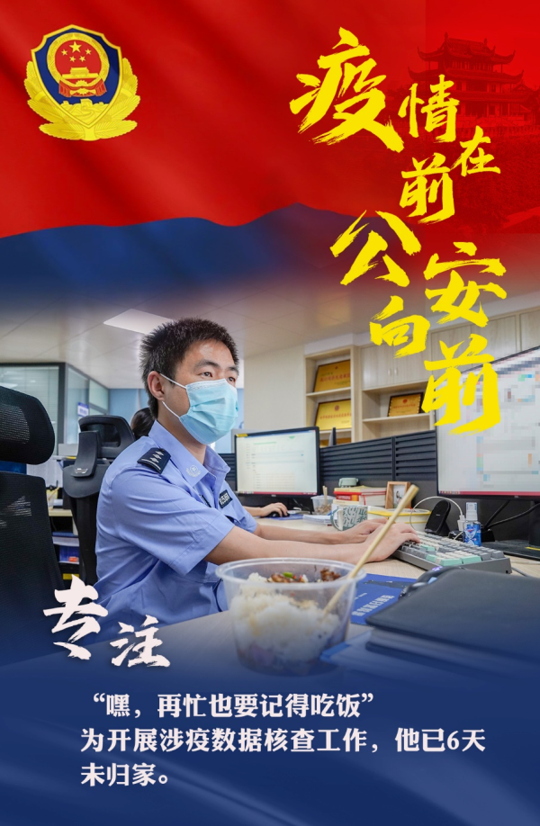 雨花公安分局刑侦大队中队长柳萌正在开展涉疫数据核查,为防疫工作提供精准数据支撑。一心扑在工作上的他,已经有6天没回家了。8月5日下午2时许,忙于工作的柳萌还未来得及将午饭吃完。