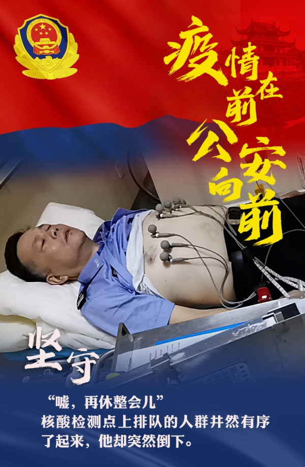 8月6日,58岁的芙蓉公安分局东湖派出所民警陈感泽正在韶光社区核酸检测点维持秩序,由于天气炎热,他突然晕倒在地。紧急送医后,医生初步诊断为轻微心梗。医生和同事们再三叮嘱他“好好休息”,躺在病床上的陈感泽却有些着急地说:“我会赶快好起来回到工作岗位上,老这么躺着真不自在!”
