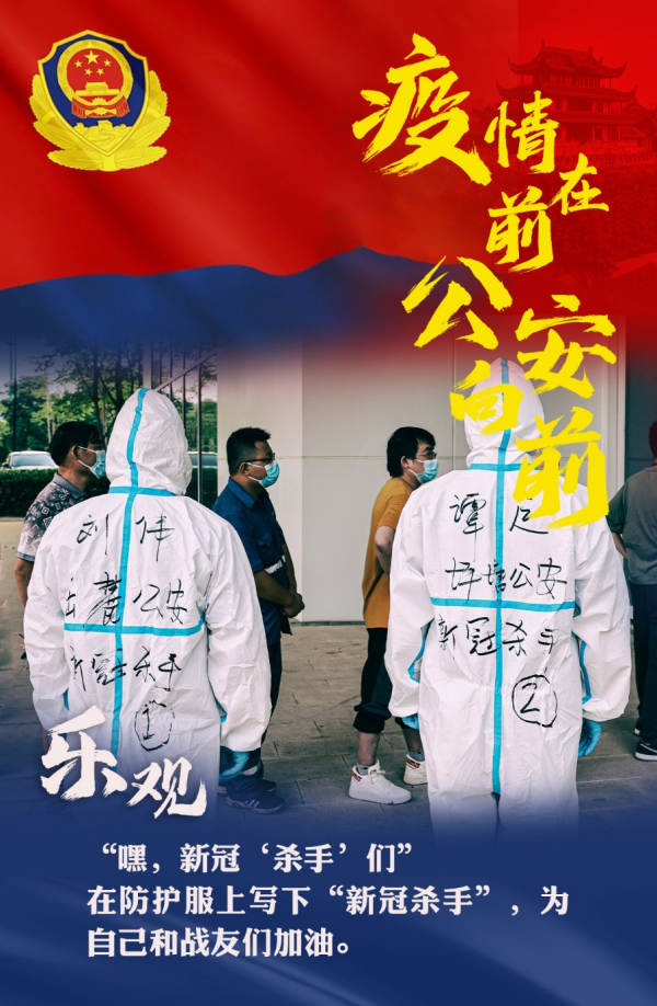 “刘伟,岳麓公安新冠杀手1号!”8月4日,岳麓公安分局坪塘派出所民辅警们正全副武装值守在隔离点。穿上防护服后早已分不清是谁,他们在防护服上写下自己的姓名,并写上“新冠杀手”这样的字样,用这样的方式为自己和战友加油鼓劲!