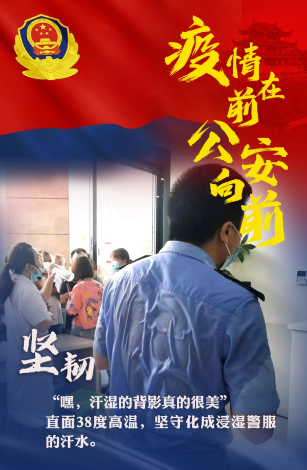 7月30日,38度的高温天,在临时疫苗接种点上,望城公安分局月亮岛派出所党员辅警吕滔正耐心维持着现场秩序,800余名群众排起了长龙。吕滔帮助医务人员发放排队序号,不断提醒大家保持安全距离、有序排队,警服被汗水全部浸湿,这平常又感人的一幕被热心群众记录下。