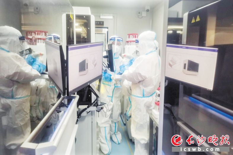 “方舱实验室自动化程度高,样本开盖、核酸提取和加样都是仪器自动化完成,能大大提高检测效率,核酸样本送入方舱后最快4个小时可出结果。”长沙市第一医院检验科副主任姚涛介绍,同样检测1万份样本,相比目前大多数医院的核酸检测实验室,可节约人力10余人。每个方舱实验室一天可检测1万份样本,如果按照10混1的采样方法,则每天可检测10万人次。