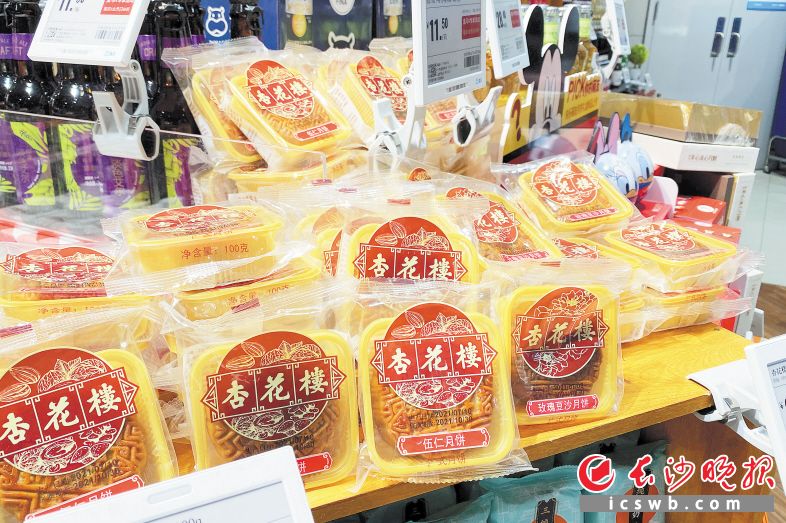 传统蛋黄、伍仁口味的月饼依旧是月饼卖场的主角。均为长沙晚报全媒体记者 刘攀 摄