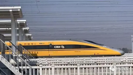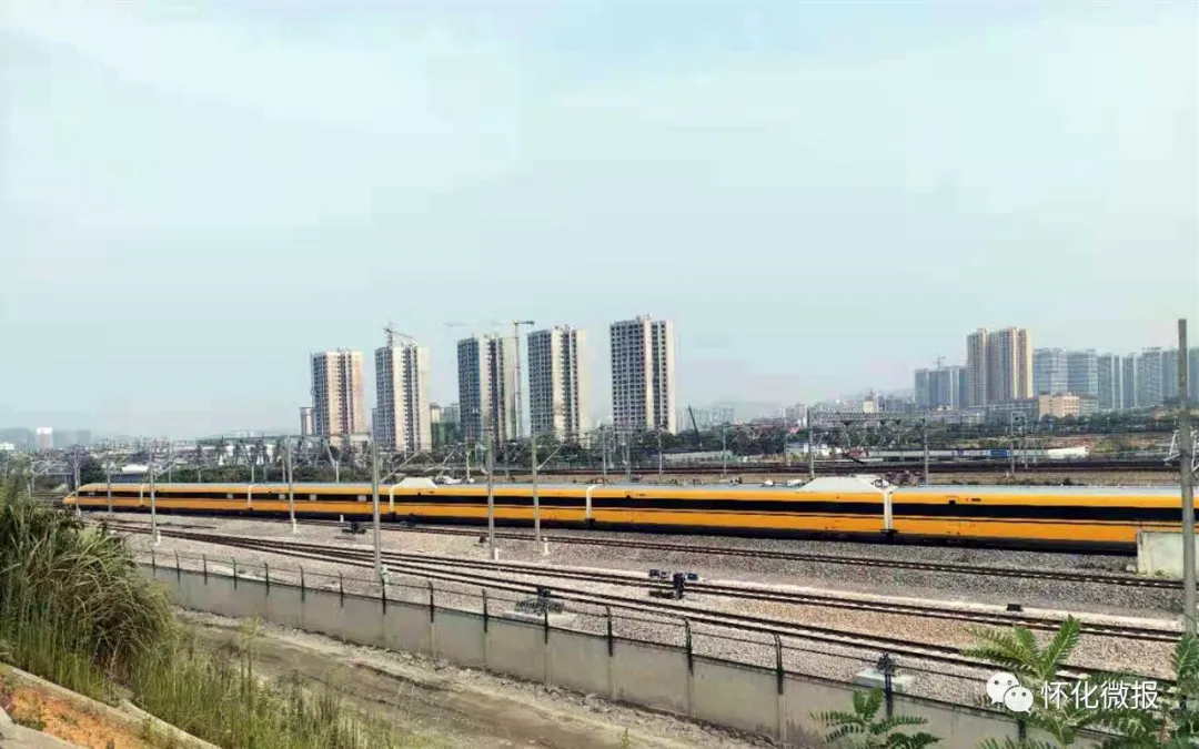 一列CRH380AJ-0203综合动车检测车驶出怀化南站开往古丈西站