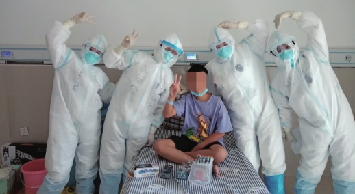 华声在线8月8日讯 “祝你生日快乐,祝你生日快乐……”8月6日,株洲市新冠肺炎定点救治医院的隔离病房里来了一群特殊的“大白”,身着防护服的医护人员给11岁的男孩安安(化名)过生日。