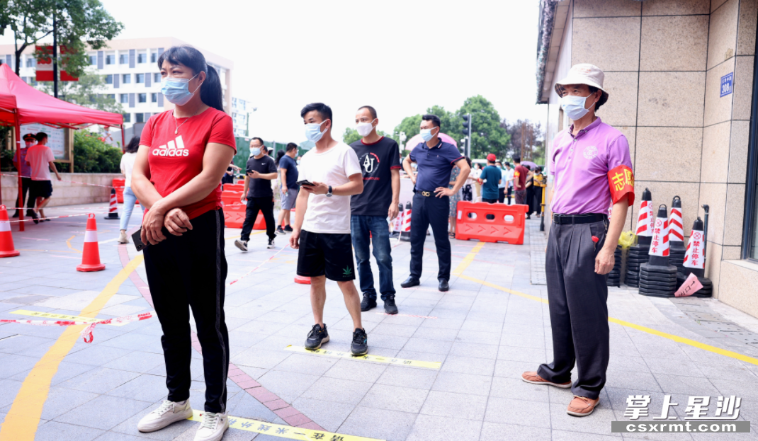 星沙时报8月7日讯(记者 盛磊 通讯员 柳慧)“请提前准备好个人健康码”“请大家保持一米距离排队”“请检测完的群众不要在通道处停留”……8月5日,星沙街道首批7个社区启动全员核酸检测,8月6日,第二批6个社区接续奋斗。在全员核酸检测过程中,让人感动的是,辖区县直部门、党员、居民志愿者在各采样点全力协助核检工作高效有序进行,成为核检现场一抹靓丽的“志愿红”,同时,爱心企业送来防暑物资,让现场一线人员和居民倍感暖心和凉爽。