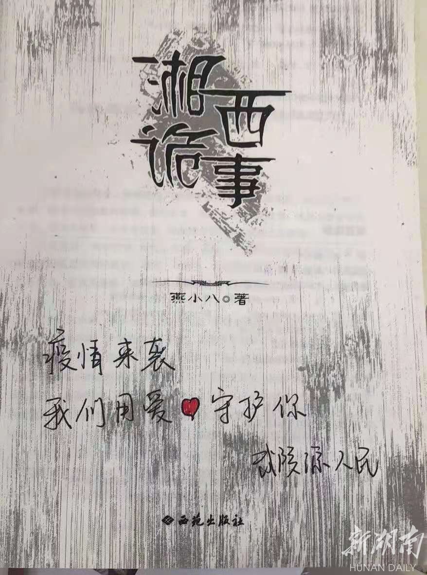 华声在线8月5日讯(湖南日报·华声在线记者 廖声田 田育才)“信心是最好的疫苗”“有书作伴,温暖你我”“此心安处是吾乡”……8月5日上午,张家界市武陵源区委宣传部工作人员来到滞留游客居住的定点酒店,为他们送上各类书籍,每本书的扉页都有一份当地市民手写的祝福,鼓励携手抗疫,共渡难关。