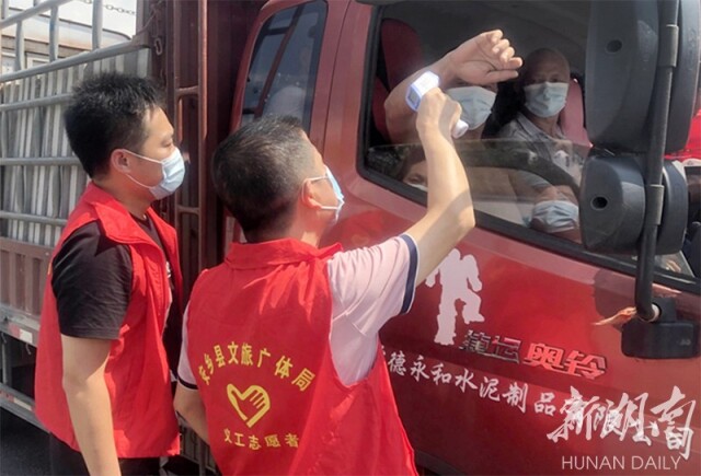(连日来,常德市安乡县全面关停县域内文化、旅游、体育行业室内密集场所,在各交通出入口设立疫情防控检查站,对过往人员进行体温检测和健康码、行程码查验,从严从实从细抓疫情防控工作。李胜男 摄)