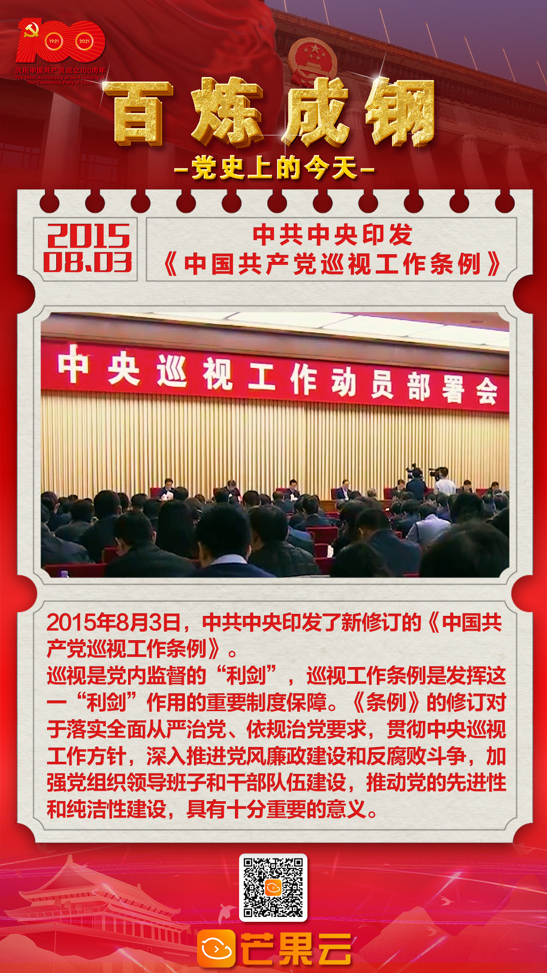 百炼成钢·党史上的今天:2015年8月3日,中共中央印发《中国共产党巡视工作条例》