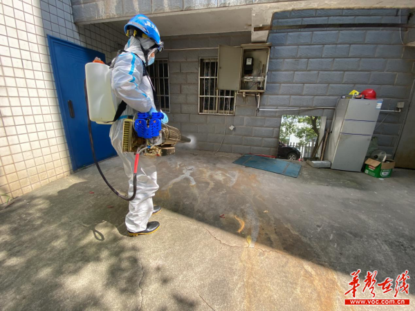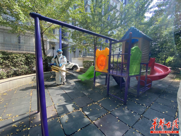 华声在线8月2日讯(通讯员 谭立 记者 杨帆 )8月2日,湖南省红十字蓝天救援中心的队员在天心区金盆岭社区和香芙嘉园开展消杀工作。