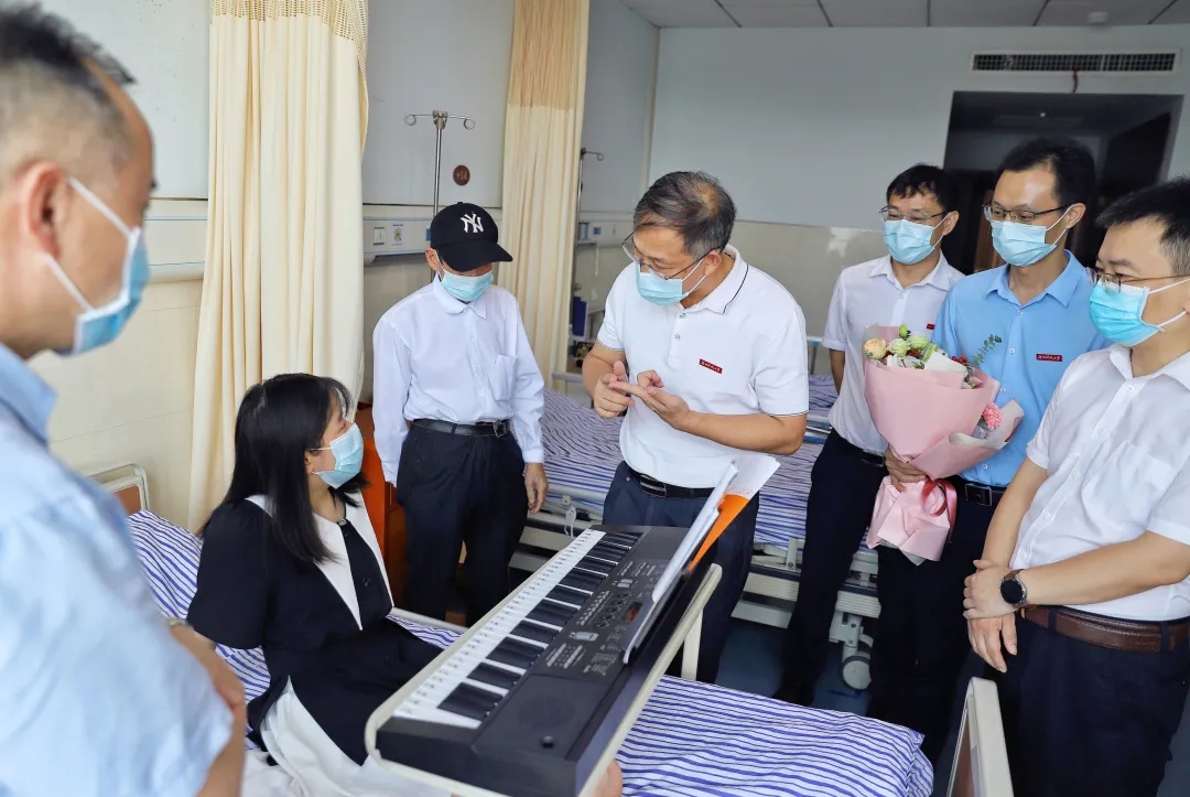 “以后,科大就是你的家,所有的师生都是你的家人,希望你能在科大健康快乐的成长!”病床前,唐亚阳勉励肖盼要勇敢面对先天疾病,好好接受治疗,刻苦学习,自立自强,将阳光、乐观、坚强的精神感染更多的人。