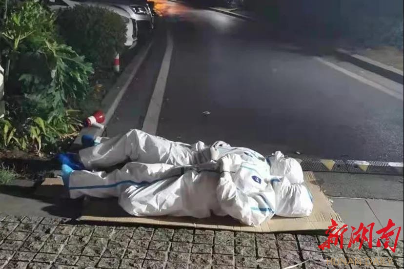 华声在线7月31日讯(湖南日报·华声在线记者 李永亮 通讯员 何丽芳)7月31日,一张株洲医护人员就地睡觉的照片走红微信朋友圈。记者走访得知,7月30日,株洲市三医院抽调30余名医护人员组成核酸采样突击队,为荷塘区某小区7000余居民做核酸检测。大家一直忙到次日凌晨1点,有的甚至没有吃晚饭。护士何露浩和李晶莹连续工作12个小时,疲惫不堪,在马路边,铺上纸板,席地而睡,被网友拍下。