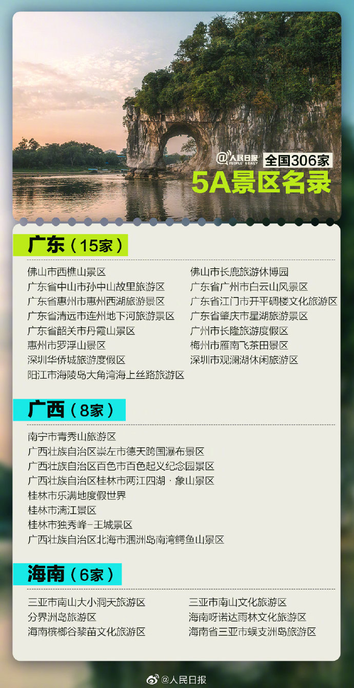 截至目前,全国共有306家AAAAA级景区,其中湖南共有11家被评为全国5A级景区,分别为张家界武陵源—天门山旅游区、湖南省岳阳市岳阳楼—君山岛景区、湖南省常德市桃花源旅游区、湖南省株洲市炎帝陵景区、湖南省湘潭市韶山旅游区、湖南省邵阳市崀山景区、湖南省长沙市岳麓山·橘子洲旅游区、衡阳市南岳衡山旅游区、郴州市东江湖旅游区、长沙市花明楼景区、湖南省湘西州矮寨·十八洞·德夯大峡谷景区。