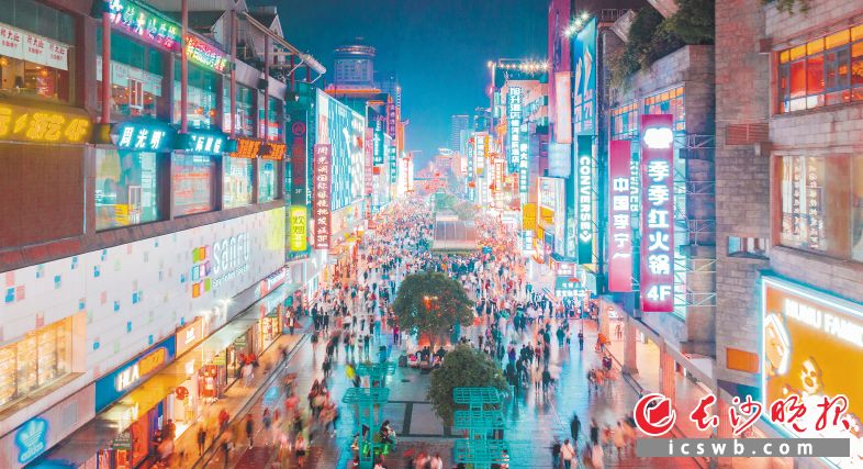 夜晚的黄兴路步行街人头攒动。邹麟 摄