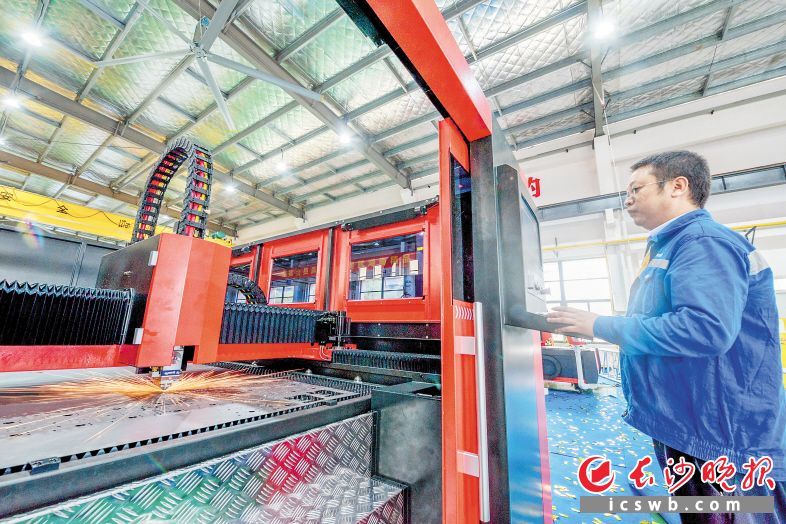 湖南大族智能装备制造基地的生产车间里,产业工人加紧对激光加工设备进行调试。