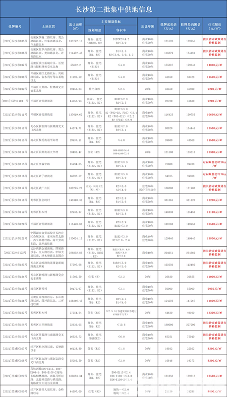 据悉,本次29宗地块均设定了出让最高限价,涵盖了滨江新城、高铁会展新城、高铁西城、麓谷等热点板块,其中5宗土地采取了“限房价、限地价+摇号”的出让方式。