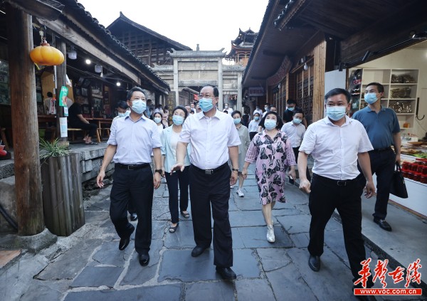 (9月1日至2日,省委副书记、省长毛伟明来到永顺县、沅陵县调研。图为9月1日毛伟明在永顺县芙蓉镇调研文旅市场恢复情况。)