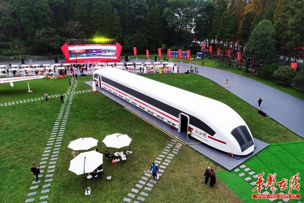2021中国红色旅游博览会,湖南省展区以“韶山号”磁悬浮列车形式亮相。(湖南日报记者 童迪 摄)