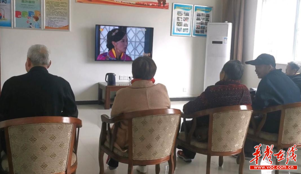 老人们聚在一起其乐融融地看电视。蔡文龙 吴紫欣 摄