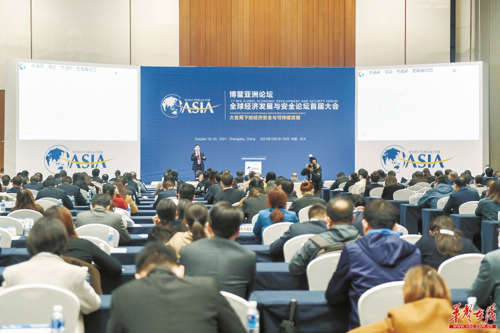 10月20日,博鳌亚洲论坛全球经济发展与安全论坛首届大会分论坛“对话自贸区:‘试’出中国经济的大未来”在长沙举行。图为论坛现场。