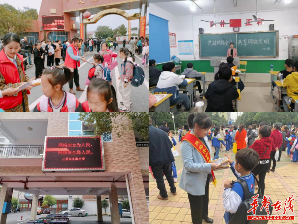华声在线10月18日讯(通讯员 黄星 皮灿华)“小朋友,没有经过家长的同意,千万不要在网上泄露姓名、年龄、学校或家庭住址、电话或手机号码等个人信息哦。”“这位同学,你一定要注意个人及家庭隐私信息保护……”近日,在攸县各中小学校门口,总能看到一群身披红色宣传条幅的志愿者们向过往的同学们发放宣传资料,并现场提醒孩子们网络安全的注意事项。这是由攸县县委网信办联合县网安大队、县教育局、团县委、县妇联开展的网络安全宣传“进校园”活动。