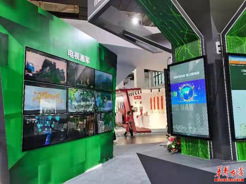 湖南馆位于A馆,面积140平方米,以“视听马栏山,魅力新湖南”为主题,围绕“文化科技融合、版权示范引领、优秀作品展示”这一主线,设置了建党百年、电视湘军、出版湘军、动漫游戏、烟花陶瓷、示范创建等板块,汇聚了芒果TV、中南传媒、中广天择、天舟文化、盘子女人坊、山猫卡通等全国版权示范单位、湖南版权品牌企业的优秀作品,全面展示湖湘版权魅力,突出展现湖南版权产业以习近平总书记重要指示精神为引领,全面推进文化产业高质量发展的成就。