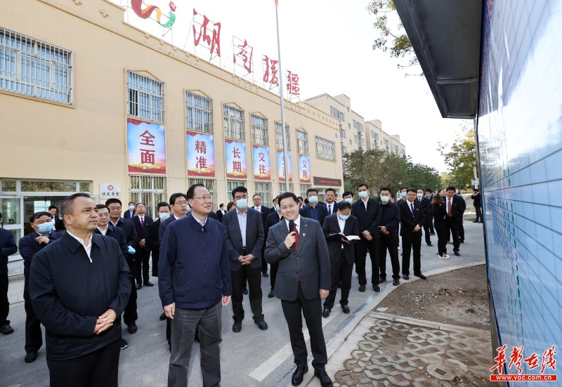 毛伟明说,这次考察,感受最深的是“变”字、感触最深的是“情”字、认识最深的是“盼”字。“洞庭天山万里情,对口援疆续新篇。”他强调,要完整准确贯彻新时代党的治疆方略,着力在促进新疆社会稳定和长治久安的根本性、长远性问题上精准发力,真正把援疆工作打造成推动发展的工程、民族团结的工程、凝聚人心的工程。更加注重突出规划引领,加快完善并推进实施湖南省“十四五”对口援疆规划,确保援到点子上、援到关键处,让当地群众尽早得实惠。更加注重维护团结稳定,加强基层阵地建设、促进交往交流交融、巩固文化润疆成果,铸牢中华民族共同体意识。更加注重提升综合效益,强化人才支撑作用,提升产业造血功能,发挥绿色生态优势,促进两地交融。更加注重办好民生实事,大力促就业、补短板、优服务,努力解决当地群众急难愁盼问题,增强群众获得感幸福感安全感。