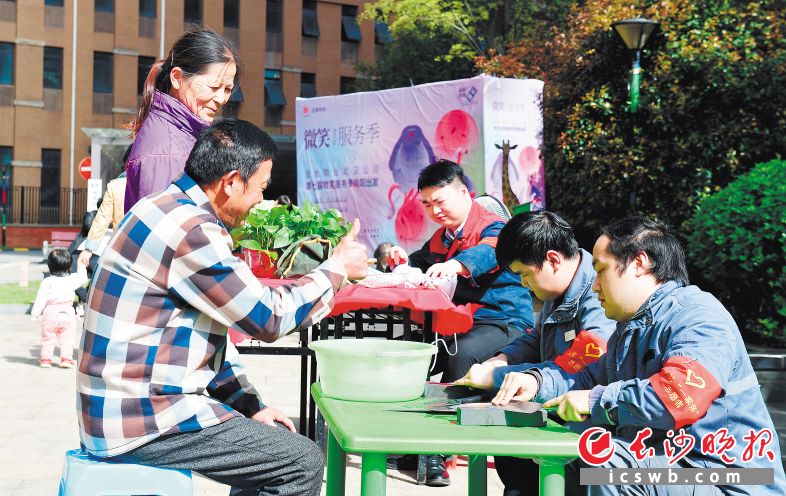 雨花区积极打造“红色物业”,在金地格林公馆小区,党员志愿者与物业服务人员常态化开展便民活动,义剪义修、磨菜刀等系列服务,获得居民点赞。陈飞 摄